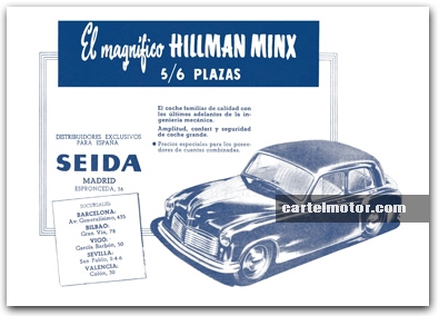 AUTOMÓVILES 1950 - 1959. Aleu • Alfa Romeo • Armstrong Siddeley • Aston Martin • Austin Healey • Berkeley • Biscuter • Borgward • Bradford • Buick • Cadillac • Chevrolet • Chrysler • Citroën • Clúa • David • Delage • Delahaye • DKW • Ferrari • Fiat • Ford • General Motors • Gutbrod • Hillman • Hispano • Hotchkiss • Humber • Isetta • Jaguar • Jeep Willys • Jowett • Junior • Kaiser • Kapi • Lagonda • Land Rover • Lloyd • Mercedes Benz • MG • Nash • Opel • Panhard • Pegaso • Peugeot • Plymouth • Porsche • PTV • Renault • Riley • Rover • Seat • Simca • Singer • Standard Vanguard • Studebaker • Sunbeam • Toyota • Triumph • Triver • TZ Sider • Vauxhall • Volkswagen • Wolseley.